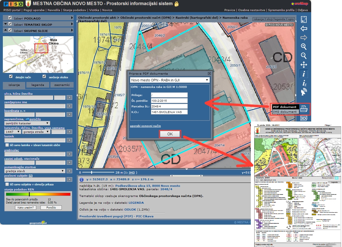 PISO Spletni pregledovalnik internim uporabnikom omogoča tiskanje uradnih kartografskih prilog.