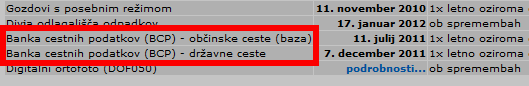 Kot nadaljevanje priprave in dopolnitve obstoječih tematskih sklopov Cestno omrežje (BCP) z delom za državne ceste (DC), kar smo izvedli v sredini decembra, smo sedaj zaključili ažuriranje podatkov na občinskem delu z opisnimi podatki, ki smo jih pridobili z Direkcije Republike Slovenije za ceste (DRSC).