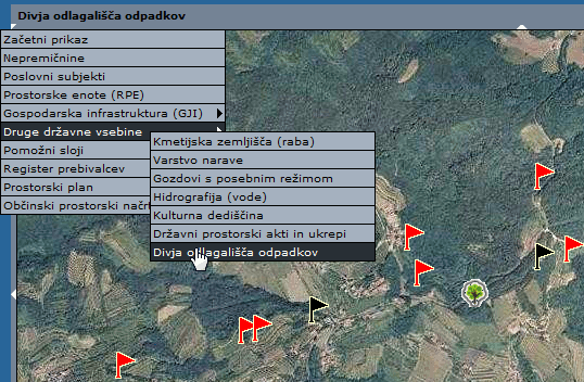 V sistem PISO smo vključili splošen tematski sklop Druge državne vsebine ⇒ Divja odlagališča odpadkov. Sloj prikazuje divja odlagališča odpadkov, ki so jih evidentirali prostovoljci v sklopu akcije "Očistimo Slovenijo"