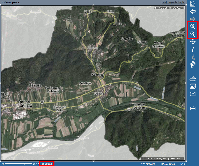 1. Prednastavljena povečava in pomanjšava prikaza oziroma merila