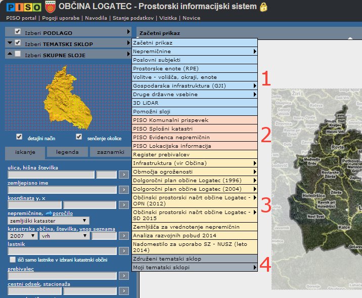 S sivo barvo (sklop 4) pa sta obarvana "Združeni tematski sklop" in "Moji tematski sklopi", ki uporabniku omogočata vključitev poljubnih tematskih sklopov.