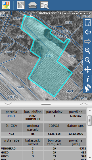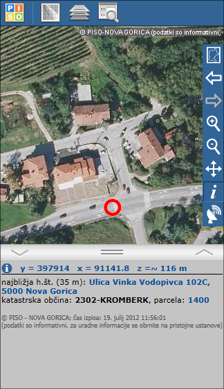 - poizvedba na lokaciji (kaj se nahaja tukaj, parcela, nadm. višina, najbližji naslov, poslovni subjekt …);