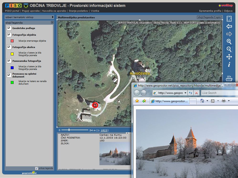 - možnost povezovanja grafičnih pojavov in drugih virov ali evidenc (odlok prostorskega akta, fotografije,spletni registri ...);
