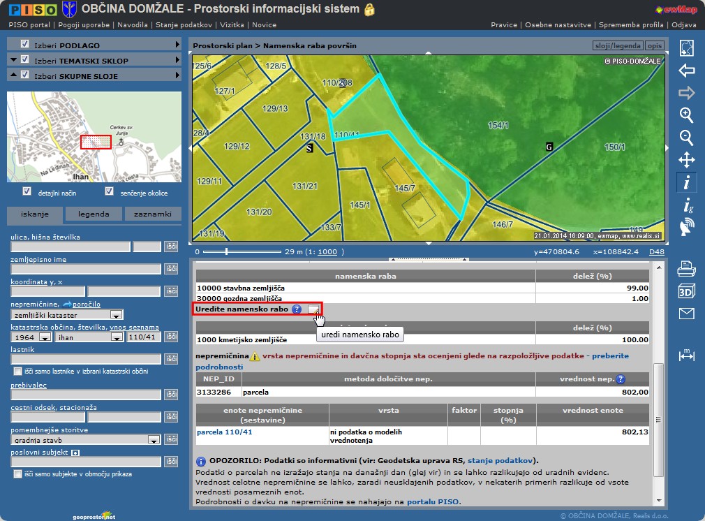 V postopku priprave Namenske rabe za vpis v evidenco REN, v katerem smo intenzivno sodelovali z občinami in Geodetsko upravo, smo PISO nadgradili z novo funkcionalnostjo Urejanja namenske rabe ZA INTERNE UPORABNIKE.