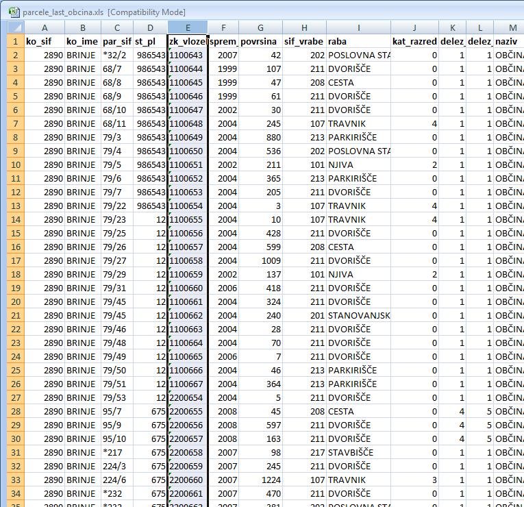 - Seznam parcel z opisnimi podatki v lasti občine z dodanim deležem (tudi solastnina),