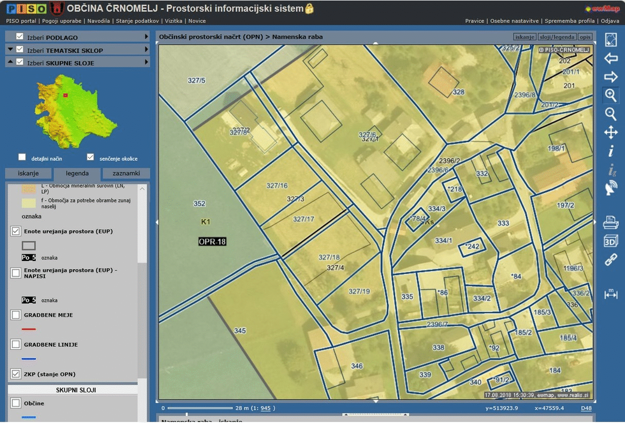 V spletni PISO (interni del) smo k trenutno veljavnemu občinskemu prostorskemu aktu, ki definira namensko rabo prostora, vključili zemljiški kataster (ZKP), ki je bil uporabljen pri njegovi izdelavi. Z vključitvijo tega podatka je sedaj omogočen pregled sprememb med starim in novim stanjem ter razlik in odstopanj. Narejen je tudi iskalnik po katastrski občini in parceli.